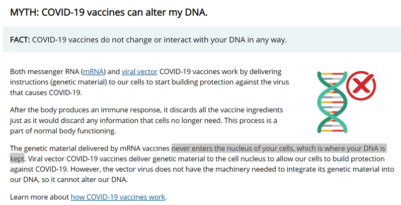 - While the CDC claims that the mRNA “vaccines” never enter the nucleus (see Figure 1 and CDC website), a new in vitro study indicates otherwise. The study reports that the results indicate “…a fast up-take of BNT162b2 [Pfizer/BioNTech] into human liver cell line Huh7, leading to changes in LINE-1 expression and distribution. We also show that BNT162b2 mRNA is reverse transcribed intracellularly into DNA in as fast as 6 h upon BNT162b2 exposure.”