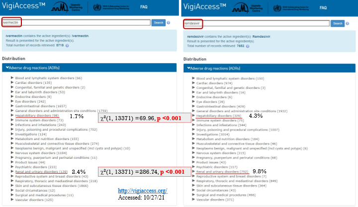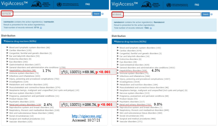 - Prior to addressing some literature pertaining to remdesivir, it is important to take note of the comparison of reported side effects relative to ivermectin. This is data from the WHO VigiAccess™ database (http://www.vigiaccess.org/). The concern pertaining to safety are also outlined by (Gerard et al., 2021)