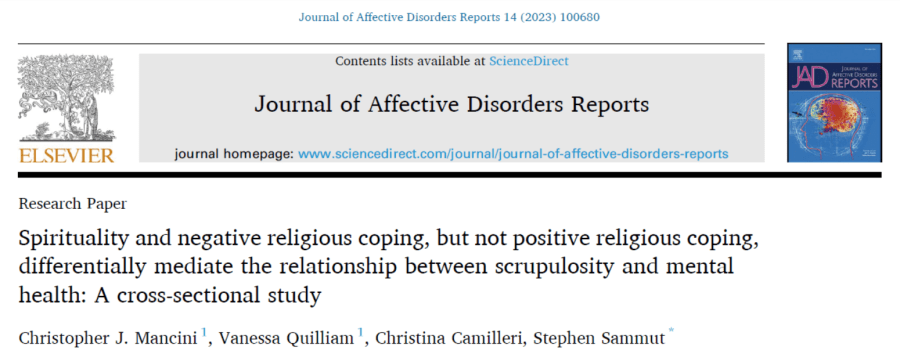- While both spirituality and negative religious coping mediated the relationship between scrupulosity and mental health (positively and negatively, respectively), positive religious coping was not involved in such mediation.